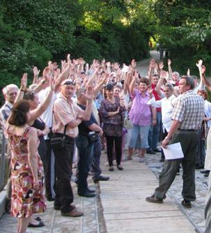 Между тем в лагерь постоянно идут посетители. Русские, армяне, дагестанцы, греки — в борьбе за Кудепсту едины все. Кто-то несет защитникам природы хлеб, кто-то овощи. Местный авторитетный человек, Омар, привозит на джипе шашлыки и огромную кастрюлю борща.