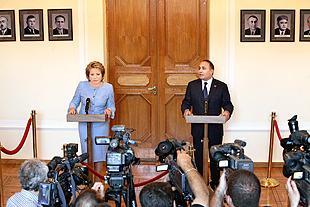 Председатель Национального собрания Овик Абраамян особо отметил доверительный характер отношений между нашими странами, достаточно полную законодательную базу, созданную парламентариями для эффективного сотрудничества. Валентина Матвиенко согласилась с этим, но тем не менее предложила «критически посмотреть на характер нашего парламентского взаимодействия» с тем, чтобы в нём было как можно меньше формализма и больше конструктивности. Она приветствовала открытие в Ереване филиала Международного института мониторинга развития демократии, парламентаризма и соблюдения избирательных прав граждан и предложила в рамках Межпарламентской ассамблеи СНГ выработать единые критерии оценки проведения выборов.