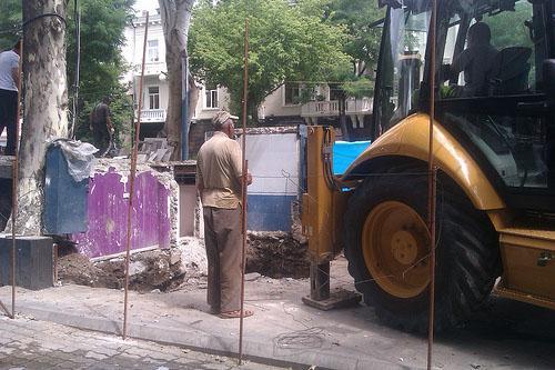 Сегодня с полудня на улице Абовяна в Ереване на месте демонтированных бутиков проводилось строительство, вернее, посредством трактора копали фундамент.