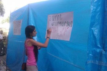 Армянские активисты, протестующие против строительства на ереванской улице Абовяна ушли, оставив плакаты с надписью «Тарон Маргарян, некрасиво», «Захват общественной территории».
