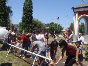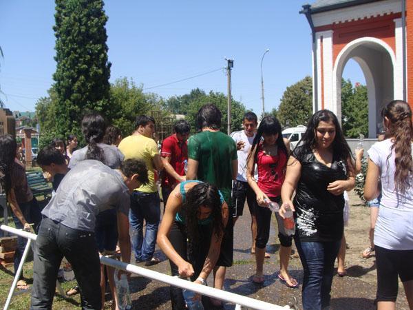 После Св. Литургии прихожане, вместе с настоятелем церкви Тер Макаром, вышли во двор, где был установлен специальный бак с водой. Священник освятил воду и окропил ею присутствующих, после чего началась водная вакханалия. Остаться сухим в тот день не удалось никому, ни детям, ни взрослым. Прохожие же удивленно смотрели на это представление, где главным действующим лицом была вода.
