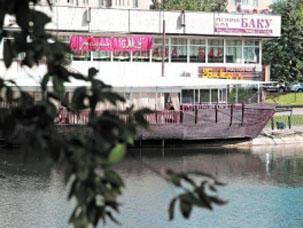 В меню – бакинские овощи, шашлык из корейки ягненка, плов с бараниной, ассорти кавказских сыров и прочие шедевры закавказской кухни. Кстати, не так чтобы запредельно дорого. У входа за столиком сидят пожилые азербайджанцы, обсуждают за бутылкой вина что-то свое. На летней веранде, стилизованной под корабль, публика поинтернациональней гуляет под свиной шашлык и водку.