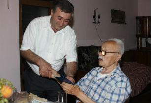 Сегодня по инициативе паспортного отдела полиции Вагаршапата начальник отдела Андраник Адамян торжественным образом вручил самому пожилому жителю деревни Маршал Баграмян, 104-летнему Мовсесу Дермишяну паспорт гражданина Республики Армении.