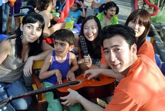НА ДЕЛЕ ВЫШЛО ИНАЧЕ, И ВОЛОНТЕРЫ С РАДОСТЬЮ ВЗЯЛИСЬ за выполнение своей миссии - по утрам очищали игровую площадку центра от зарослей, вечерами занимались с детьми, проходящими здесь лечение. В промежутках между трудовыми буднями корейский десант ходил по музеям и выставочным залам, бывал в храмах и на озере Севан, посещал коньячный завод "Прошян" и другие предприятия.