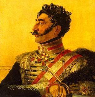 Среди них выделяется портрет настоящего гусара, обожаемого счастливца войны Валериана Григорьевича Мадатова (1782-1829). В Россию уроженец карабахского селения Чанахчи (Аветараноц), что неподалеку от Шуши, нареченный при рождении именем Ростом, попал в 15-летнем возрасте. В Петербурге честолюбивый юноша поступил на военную службу, а вскоре императорской волей стал портупей-прапорщиком лейб-гвардии Преображенского полка. Боевое крещение получил в ходе русско-турецкой войны 1806-1812 гг., когда под Рассеватом в составе армии генерала Багратиона 26-летний гусар с двумя эскадронами обратил в бегство четырехтысячный корпус кавалерии Хосров-паши. За этот бой он был награжден золотой шпагой с надписью «За храбрость». При деревне Чаушкой в чине майора Мадатов получает Георгиевский крест за свое второе безумие: с одним эскадроном гусар он врубился в многотысячную колонну противника, рассеял ее и захватил орудие.