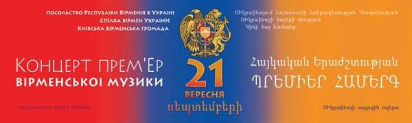 21 сентября в 19.00 в Национальном академическом театре оперы и балета Украины имени Т.Шевченко состоится торжественное заседание и праздничный концерт посвященный Дню Независимости Республики Армения.
