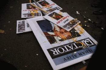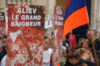 Участники акции скандировали лозунги «Алиев-фашист, вон из Франции!», «Сафарова в тюрьму!». Сопредседатели Координационного совета армянских организаций Франции Ара Торанян и Мурад Папазян выразили «непонимание» по поводу того, что президент Франции принял Ильхама Алиева через 18 дней после того, как последний помиловал Рамиля Сафарова, а также в связи с тем, что президент республики пока еще не принял представителей армянских организаций по вопросу Геноцида армян. «Азербайджан – черное государство, которое не белеет», - заключил Мурад Папазян.