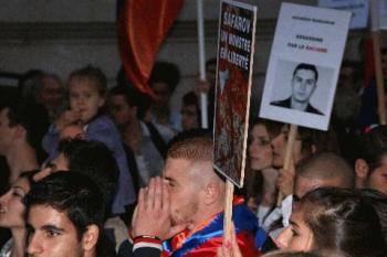 При этом русская служба радио RFI сообщает, что в тот же день более ста человек с азербайджанскими флагами и плакатами в руках собрались возле здания посольства Армении в Париже. Одним из требованием участников акции является освобождение Арменией «оккупированной территории Нагорного Карабаха». Как рассказал один из участников акции, к зданию посольства Армении азербайджанские и турецкие студенты пришли, чтобы поддержать азербайджанского убийцу Рамиля Сафарова, так как считают законной его экстрадицию в Азербайджан и его помилование Алиевым. Отвечая на вопрос о том, оправдывает ли он помилование человека, совершившего то же, что и Рамиль Сафаров, один из участников акции заявил: «Я думаю, что он отсидел в тюрьме уже 9 лет и сделал все, что должен был сделать».
