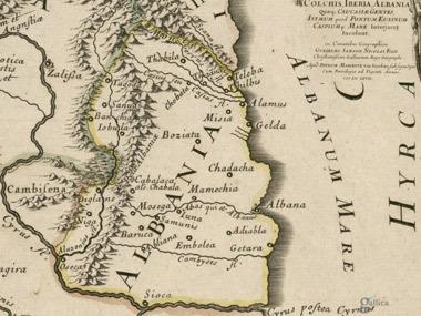 В 66-65 гг. до нашей эры римский полководец Гней Помпей три раза вступал в сражения с алуанским царем Алуанка Оройсом и, победив его, завоевал Алуанк, превратив страну в «друга и союзника Рима». Римлян, как и всех завоевателей, крайне интересовали все достоинства покоренной страны, в том числе и вопрос о ее границах. Согласно сообщению Страбона, “албанцы… живут между иберийцами и Каспийским морем, на востоке их страна прилегает к морю, а на западе граничит с иберийцами. Что касается остальных сторон, то северная окружена Кавказскими горами (потому что эти горы возвышаются над равнинами и называются, в особенности их части, что у моря, Кераунийскими горами), а последнюю сторону образует Армения, граничащая с ней” [7]. Армения же, согласно Страбону, граничила с Алуанком до того места, где “впадают в (Каспийское – Г. С.) море реки Кир и Аракс, то есть до устья этих рек.