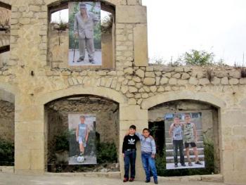 Ара Ошакан из США представляет фотопроект "Переселение". Он развесил фотографии жителей Шуши в одном из зданий на центральной улице города, разрушенной в ходе карабахской войны. Автор сообщил, что специально для реализации этой идеи он приезжал летом в Шуши.