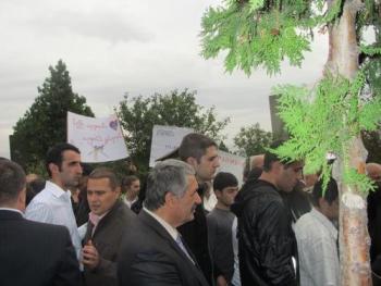 В траурной церемонии на могиле Гургена Маргаряна помимо венгерской делегации приняли участие родственники убитого, представители Министерства обороны, курсанты военных училищ, студенты с плакатами «Требуем справедливости», «Заслуженная кара преступнику», «Подкупленная Венгрия».