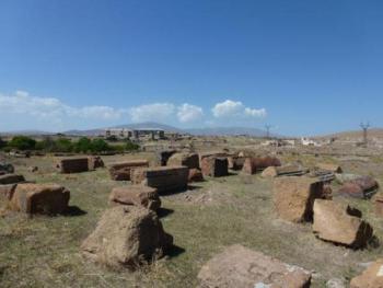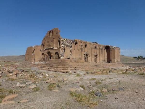 Патрик Донабедян: В центре этого ансамбля, как я говорил, есть базилика. Она точно не датирована, но на основании сравнительного исследования архитектуры и скульптурного декора этого памятника, можно легко прийти к заключению, что это памятник раннехристианского периода, а именно, примерно V-VI веков. А вокруг нее все остальное – не датировано. И это очень сложно, потому что развалины в плохом состоянии, очень мало сохранилось, и очень трудно судить. И тут археология очень помогает. И вот поэтому мы и ведем разного типа исследования. Мы исследуем со стороны классического искусствоведения, т.е. снаружи, но также мы ведем археологические раскопки с надеждой, что мы сможем лучше датировать, вообще датировать эти развалины.