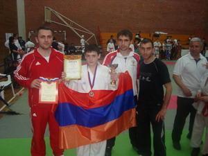 Как сообщает Информационный Центр газеты армян России «Еркрамас», наши соотечественники завоевали одну золотую, одну серебряную и одну бронзовую медали. В категории 12-13 лет (51 кг.) победу одержал Сережа Саргсян, который одержал победу во всех пяти боях. Серебряные медали у Артура Мовсисяна, уступившего сопернику в финале с минимальным счетом 4:5. Бронзовая награда у Аниты Макиян. Кроме того, третье место по командному кумите заняла армянская команда состоявшая из мальчиков 12-13 лет (Сережа Саргсян, Нарек Карапетян и Нарек Мачкалян).