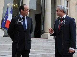 Олланд также подтвердил свою личную привязанность к объединяющей французский и армянский народы дружбе. Глава Франции выразил уверенность в том, что дальнейшие двусторонние инициативы предоставят возможность укрепить сотрудничество, в частности, в экономической сфере, находящейся не на той высоте, на которой находятся двусторонние армяно-французские политические связи.