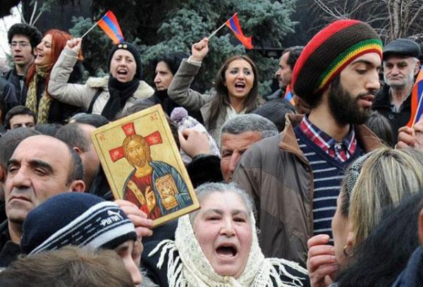 В назначенный час на площади собралось не меньше 10 тысяч человек. На ступеньках (сцену армянская оппозиция никогда у оперы не ставит) почти два часа выступали различные оппозиционные политики, а побежденный, по официальным результатам, кандидат так и не говорил главного — что делать дальше. Толпа как минимум на треть состояла из сторонников Левона Тер-Петросяна (седые деды переговаривались: «Что мы здесь делаем? Где Левон?»), поэтому взорвалась аплодисментами, когда говорить начал соратник Тер-Петросяна журналист Никол Пашинян, отсидевший несколько лет по обвинению в организации беспорядков в марте 2008 года.
