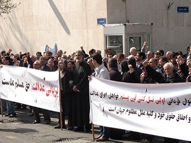 Иранские армяне в ходе акции протеста держали в руках плакаты, надпись на одном из которых гласила: «Армяне, как жертвы первого геноцида в 20 веке, требуют исполнения требований всех подавляемых народов мира».