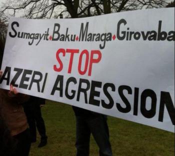 На протяжении полутора часа группа из 60 человек скандировала всевозможные лозунги, такие как: «прекратите фашистскую политику», «прекратите азербайджанскую агрессию», «Арцах - свободная земля».
