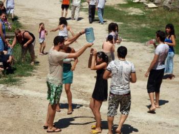 По другой версии, слово «Вардавар» состоит из корней «вард (уард)» - «вода» и «вар» - «мыть, поливать», означает «опрыскивать водой», что и составляет смысл праздника. Согласно дошедшей до нас древней легенде, на свете жил богач, требовавший за пользование принадлежащей ему водой отдавать в рабство юных красавиц. Храбрый юноша Вардан победил злодея и освободил девушек. В этот день принято обливаться водой. Праздник начинается с самого раннего утра. Все поливают друг-друга водой, кто из чего может, невзирая при этом ни на возраст, ни на пол, ни на общественное положения. Обижаться или проявлять недовольство нельзя, потому что считается, что в этот день вода обладает целебной силой.
