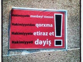 По сообщению haqqin.az, призывы к свержению власти в стране из комментариев и статусов в различных социальных сетях перекочевали и на улицы Баку. В частности, в районе станции метро «Гянджлик» обнаружено «чудо» революционной пропаганды - на революционно-красном фоне листовки черными буквами запечатлены следующие призывы: «Ты - источник власти», «Не бойся власти», «Протестуй против власти», «Поменяй власть». Все эти призывы скреплены огромным восклицательным знаком.