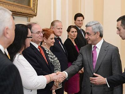 Как сообщили ИА REGNUM в пресс-службе главы армянского государства, Саргсян поприветствовал прибывшую из Австралии делегацию, каждый из членов которой, по словам президента, внес свой значительный вклад в дело укрепления армяно-австралийских отношений, а также представления и продвижения в Австралии имеющих для Армении жизненно важное значение вопросов. Он отметил важность подобных визитов, которые являются наилучшей возможностью для ознакомления на месте с развитием событий в Армении и регионе, получения ответов на интересующие вопросы, непосредственного общения с коллегами, а также приобщения к истории, культуре и традициям армянского народа.