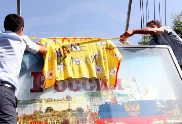 Молодые люди выражали возмущение по поводу поведения правоохранительных органов России по отношению к гражданину Армении Грачья Арутюняну, которого обвиняют в аварии рейсового автобуса под Подольском 13 июля, в результате которой погибли 18 человек и 30 ранены. Как заявил глава студенческого союза "Никол Агбалян" Герасим Варданян, правоохранительные органы РФ вели себя "нагло" по отношению к Арутюняну, одели его в женский халат на заседании суда, чем оскорбили его достоинство и нарушили права.