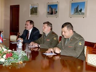 Министр обороны Армении Сейран Оганян 7 августа провел встречу с чрезвычайным и полномочным послом РФ в РА Иваном Волынским, а также с завершающим миссию в Армении военным атташе посольства В.Глаголевым и новым военным атташе А.Лобовым.