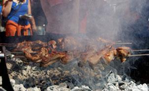 И правда, как можно не полюбить фестиваль, воздух которого пропитан неповторимым ароматом горных трав, используемых в приготовлении мяса - свежей свинины, телятины, баранины, которое запекается на углях и в ту же минуту к нему опытные повара готовят гарниры и соусы на любой вкус– сладкие, кислые, острые.