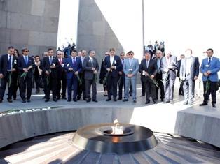 Члены 31 делегации из 17 стран мира, находящиеся в Армении для участия в мероприятиях, приуроченных к празднику «Эребуни – Ереван» и в Международной конференции мэров стран-членов Совета Европы, посетили Мемориал жертв Геноцида армян в Цицернакаберде, где отдали дань памяти жертвам этого чудовищного преступления против человечности.