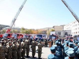 Президент Саакян вручил награды и ценные подарки группе отличившихся в ходе учений представителей Спасательной службы НКР, Министерства по чрезвычайным ситуациям РА и ряда других структур.