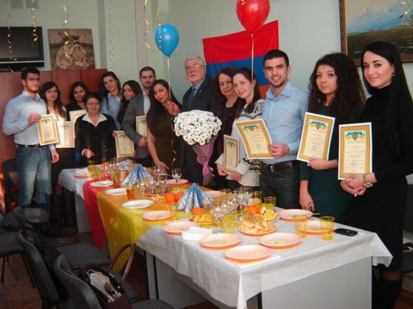 В Киевской армянской общине состоялась очередная церемония выдачи сертификатов выпускникам Курсов армянского языка. На этот раз сертификаты получили 11 слушателей. Все они прошли четырехмесячный курс интенсивного изучения армянского языка и, сдав успешно экзамен получили право продолжить обучение на 2-м уровне. Работа курсов предусматривает не только обучение армянскому языку, но и знакомит с историей, культурой, традициями Армении.