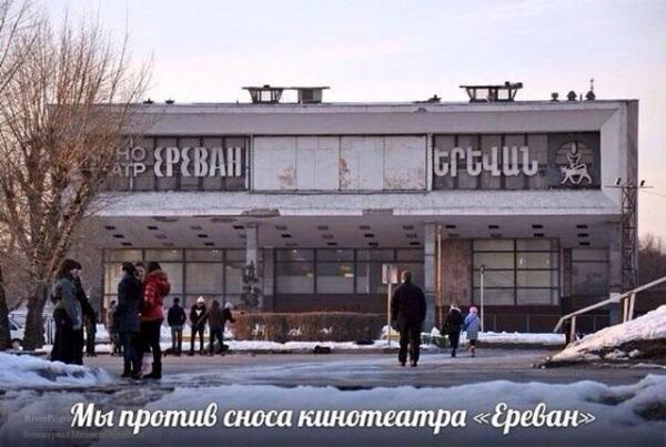 Обращаемся к Вам с просьбой о спасении кинотеатра «Ереван» построенного в 1968 году, в честь братских русско-армянских отношений от сноса и принятии решения о реконструкции и восстановления функционирования. Со времени своего открытия до начала 1990-х годов кинотеатр «Ереван», был основным местом проведения досуга у местных жителей, на площади рядом с кинотеатром, которая в 1969 г. получила название - площадь Туманяна, в праздничные дни проводились всевозможные концерты и народные гуляния, которые собирали огромное количество отдыхающих. Во время Московской Олимпиады в 1980 г. и фестиваля Молодежи и студентов в 1985 году кинотеатр «Ереван» и площадь Туманяна стали одной из площадок для проведения массовых народных гуляний. Кинотеатр «Ереван» всегда был любим местом отдыха москвичей, так же, как и в Республике Армения, кинотеатр «Москва», построенный в 1935-1936 гг. в самом сердце Еревана, является любимым местом ереванцев.