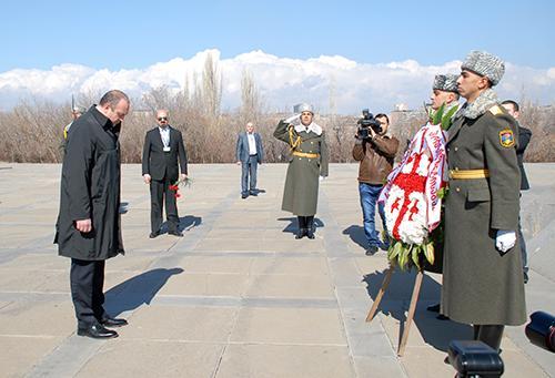Грузинская делегация отдала дань памяти невинных жертв Геноцида и возложила цветы к мемориалу.