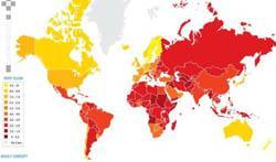 Согласно опубликованному индексу, Российская Федерация может похвастаться только 128 местом (28 баллов). Это лучший результат, чем в прошлом году, когда РФ досталась 133 позиция. Однако, повышение на пять пунктов вовсе не означает, что внутренняя ситуация улучшилась, просто у многих положение стало еще хуже.