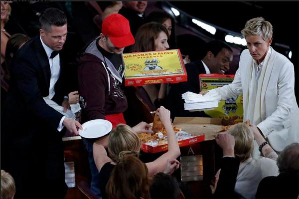 Одной из центральных тем на вручении кинопремии «Оскар» стало не невезение Леонардо Ди Каприо, а армянская пицца. Да, да вы не ослышались. Во время церемонии вручения, точнее до его начала, ведущая мероприятия Эллен Дедженерес заказала пиццу и вместе с мальчиком, доставившим пиццу, спустилась в зал и начала раздавать ее звездам Голливуда. Бред Питт, который ухватил своей жене кусок пиццы, помог ведущей раздать тарелки всем желающим на первых рядах. Однако, данное событие примечательно тем, что пицца Big Mama’s & Papa’s Pizzeria (делают ее именно в Лос-Анджелесе) – является армянско-американской сетью пиццерий, которые набирают все большую популярность в США. Сеть основана Аро Агаханяном, который приехал в США в 12-летнем возрасте. На данный момент в Калифорнии уже существует 20 пиццерий сети.