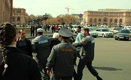 Несколько участников акции протеста против внедрения обязательной накопительной пенсионной системы, проходящей в эти минуты перед зданием Минфина в центре Еревана, задержаны.