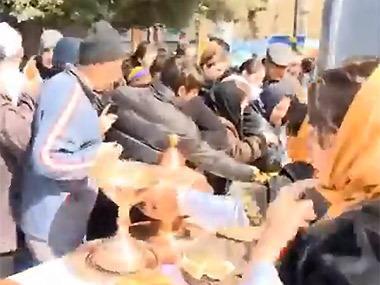 Однако группа жителей азербайджанского города напала на праздничный стол и принялась сметать с него все содержимое. Несмотря на крики этой женщины, остановить толпу голодных шекинцев было невозможно. В считанные минуты жители города растаскали все убранство праздничного стола, пишет портал.