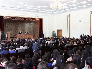 Президент Нагорно-Карабахской Республики Бако Саакян 20 марта встретился со студентами и профессорско-преподавательским составом Арцахского государственного университета.