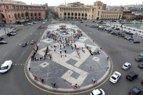 Как сообщили Новости Армении – NEWS.am в пресс-службе мэрии Еревана, в результате проведенного при участии около 800 молодых людей флэшмоба в центре Площади была изображена планета Земля, находящаяся в ладонях матери, что символизировало «тепло планеты – в руках матери».