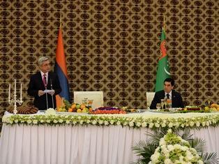Как сообщили Новости Армении – NEWS.am в пресс-службе президента Армении, два лидера во взаимных тостах упомянули о вековой дружбе и историческом прошлом армянского и туркменского народов, нынешнего высокого уровня отношений и возможностях их взаимовыгодного развития.
