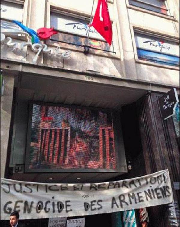 Группа молодых армян из организации «Нор серунд» вечером 18 апреля провела акцию протеста перед зданием отдела культуры посольства Турции в Париже, требуя справедливости и возмещения ущерба за геноцид, которому подвергся армянский народ. Об этом пишет «Nouvelles d`Arménie».