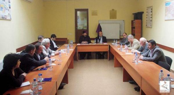 29 апреля в центре «Айартун» при Епархии ААЦ в Грузии, под председательством главы Епархии, Его Преосвященства Епископа Вазгена Мирзаханяна, состоялось первое заседание совета региональной комиссии Грузии, координирующего мероприятия, приуроченные к 100-летию Геноцида армян. На заседании присутствовал советник посольства РА в Грузии Левон Торгомян, который передал приветствия и добрые пожелания Чрезвычайного и Полномочного Посла РА в Грузии Ованеса Манукяна. В работе заседания участвовали представители из Тбилиси, всех регионов Самцхе-Джавахети, Цалки и Батуми.