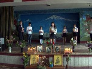 Почтив память жертв минутой молчания, школьники прочли стихи, посвященные геноциду, исполнили песни, затем зажгли свечи.