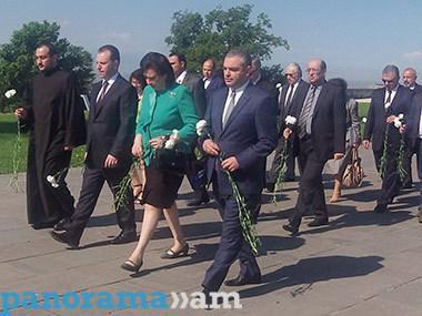Главный координатор комиссии, руководитель аппарата президента Армении Виген Саркисян, министр диаспоры Грануш Акопян, директор Музея-института Геноцида армян Айк Демоян и другие члены комиссии до начала заседания посетили мемориальный комплекс в память жертв Геноцида армян «Цицернакаберд» и возложили цветы и венок к Вечному огню.