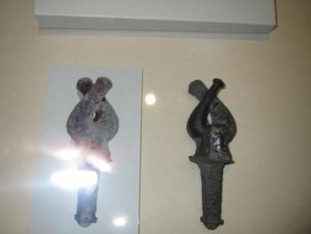 Все экспонаты были покрыты толстым слоем коррозии. Для наглядности, часть коррозийного слоя оставлена. В одном случае – бронзовый пояс, обнаруженный вместе со скелетом лошади – коррозийный слой содержал волосы животного.