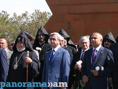 Президент Армении Серж Саргсян, в сопровождении президента НКР Бако Саакяна, высшего руководства страны и высокопоставленных представителей духовенства посетил Мемориальный комплекс Сардарапатской битвы.