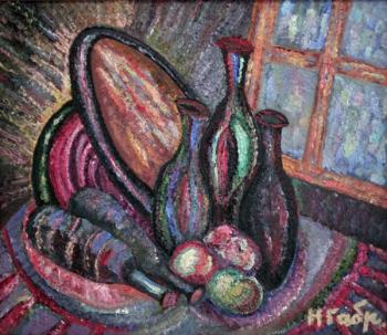 «Мой художественный метод – не рассечение и разъятие, но созерцание и вчувствование. Я пытаюсь уловить и запечатлеть сам трепет жизни, ту вибрацию, которая идет из таинственного источника, находящегося за пределами видимого мира, но имеющую зримые проявления в цветопластике бытия: в жестикуляции деревьев и цветовой перекличке кувшинов, в ритмических узорах ландшафтов и прорастающих из них зданий. Мне видится нечто общее не только в форме, но и в сути древесного плода, небесного светила и плода, вынашиваемого женщиной. Моя живопись не концептуальна. Я не стремлюсь к оформлению неких готовых смыслов, которые могли бы быть переданы и посредством слова, но пытаюсь – через цвета, формы и ритмы – приблизиться к тем энергопотокам, пульсацию которых ощущаю в глубинах мира», - говорит о своем творчестве Нина Габриэлян.