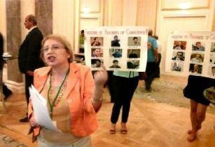 Во время кофе-брейка Юнус распространила среди иностранных участников текст заявления Центра сопротивления репрессиям, а ее сторонники развернули плакат: «Свободу узникам совести!», передает Haqqin.az со ссылкой на «Туран».