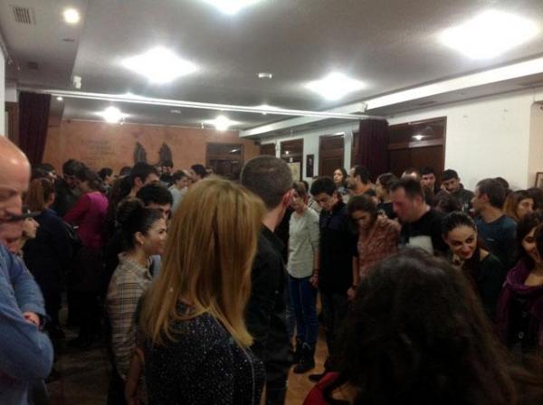 Несколько месяцев назад я решилась пойти в место, которое казалось местом встречи тайного общества. Это было тихое место в подвальном помещении недалеко от Вернисажа, где Комитас, сурово глядя со стены, смотрел на то, как странные существа били ногами по деревянному полу, что было похоже на довоенное кабинетное заседание.