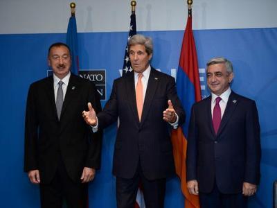 В Уэльсе началась трехсторонняя встреча президента Армении Сержа Саргсяна, президента Азербайджана Ильхама Алиевым и госсекретаря США Джона Керри. Об этом на своей странице в микроблоге Twitter написал пресс-секретарь президента Армении Арман Сагателян.