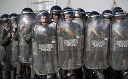 Армянские полицейские продемонстрировали в субботу в ходе командно-штабных учений навыки борьбы с массовыми беспорядками.